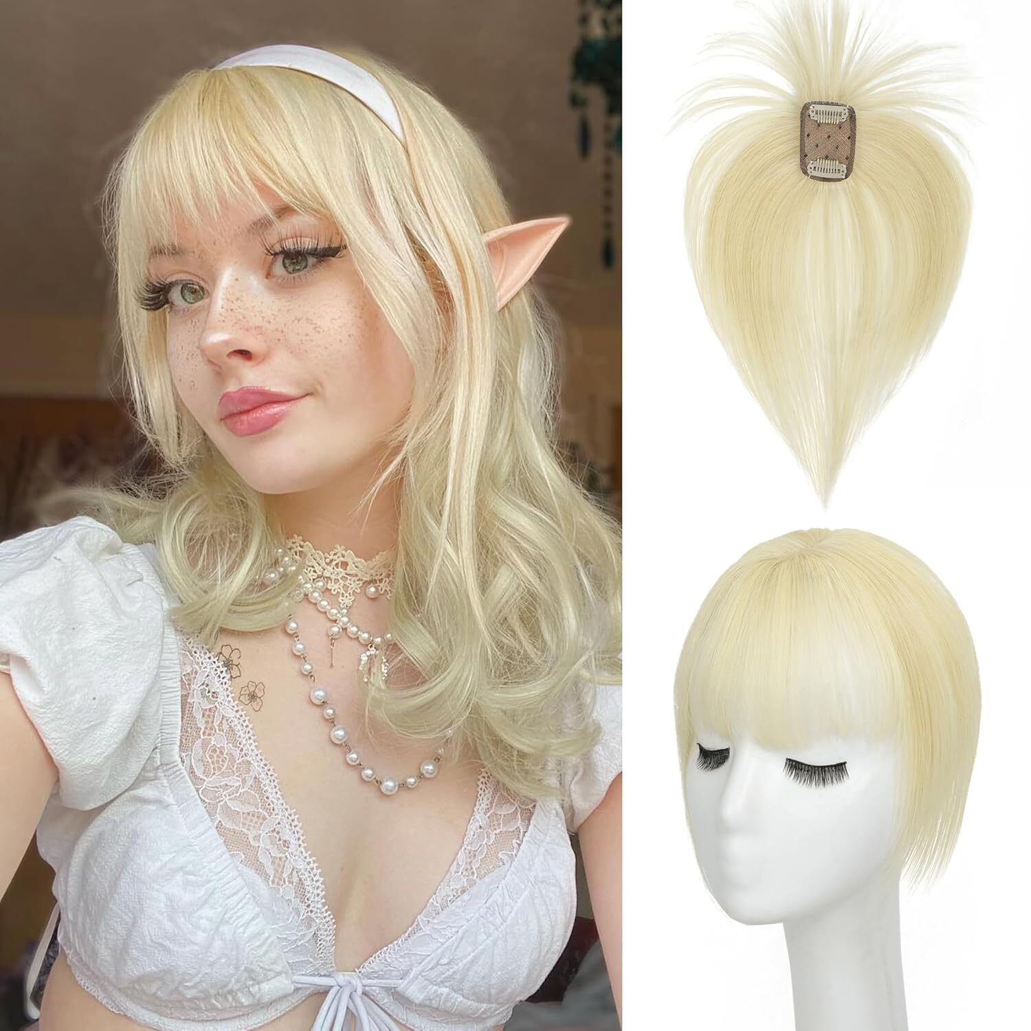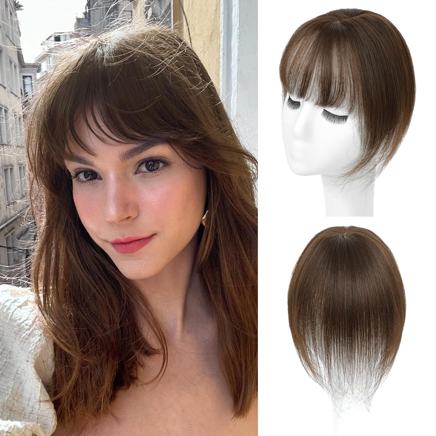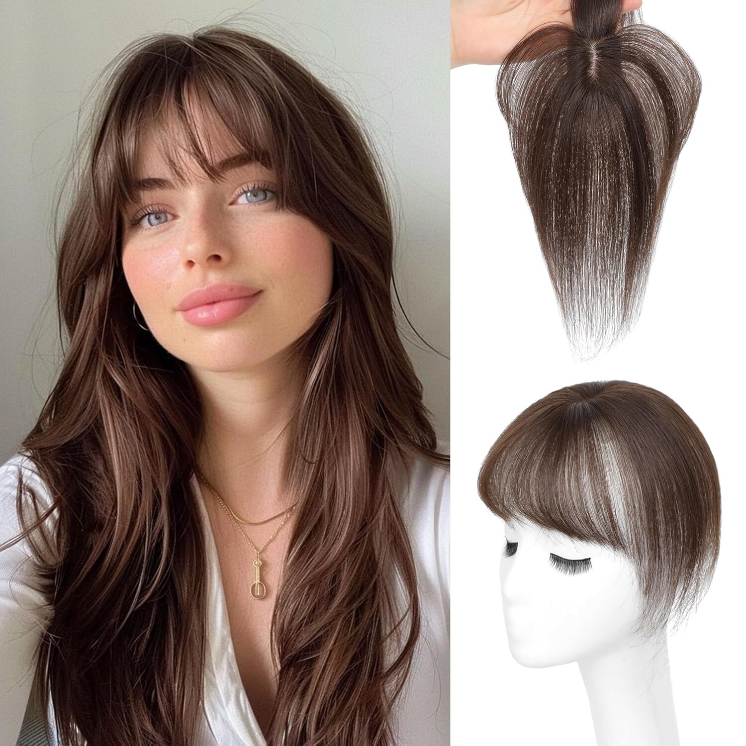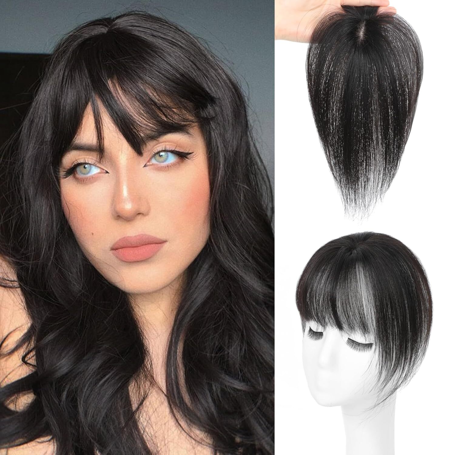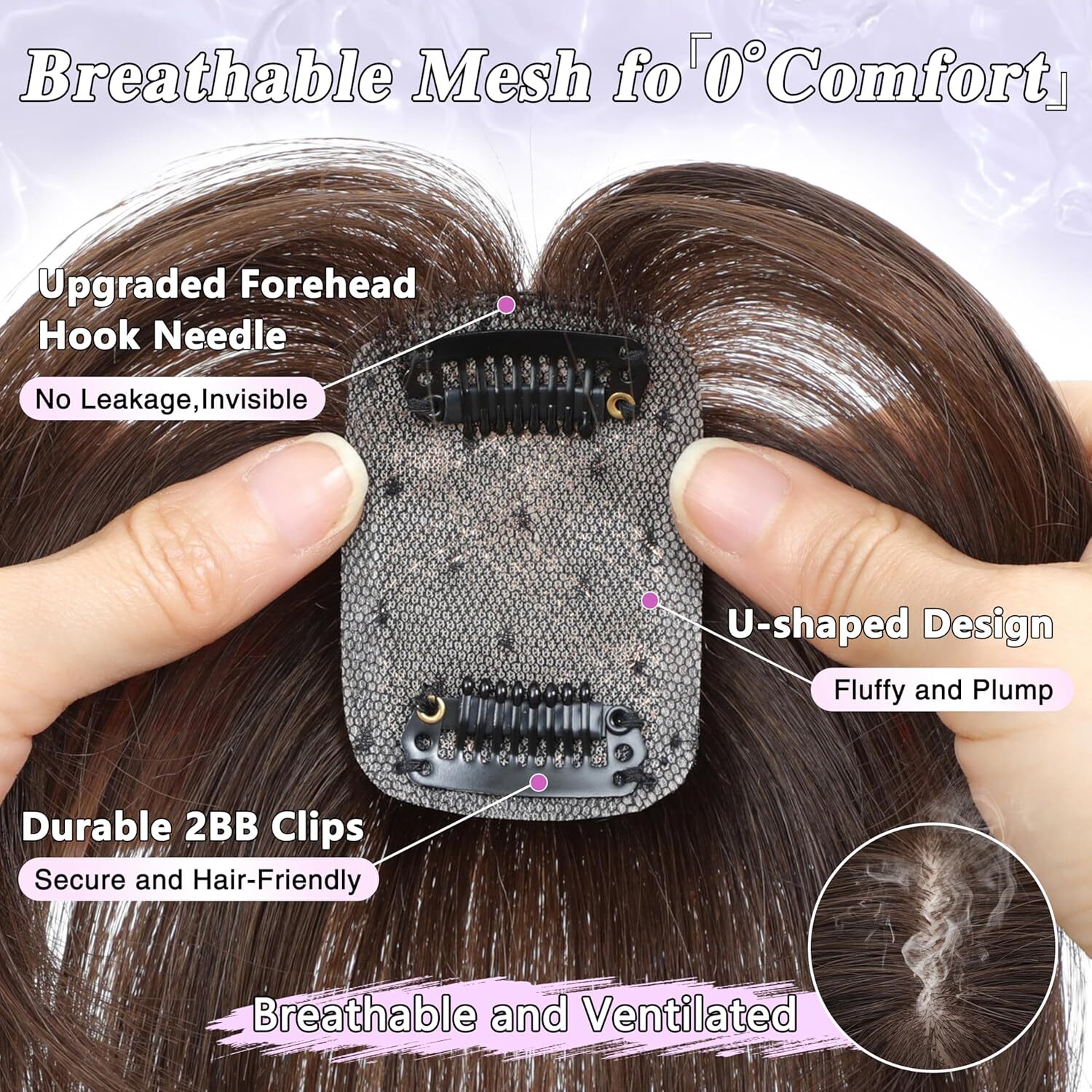 3D hair Topper with Bangs for Thinning Hair Clip in Bangs with Upgraded Silk Base Perfect for Daily Wear