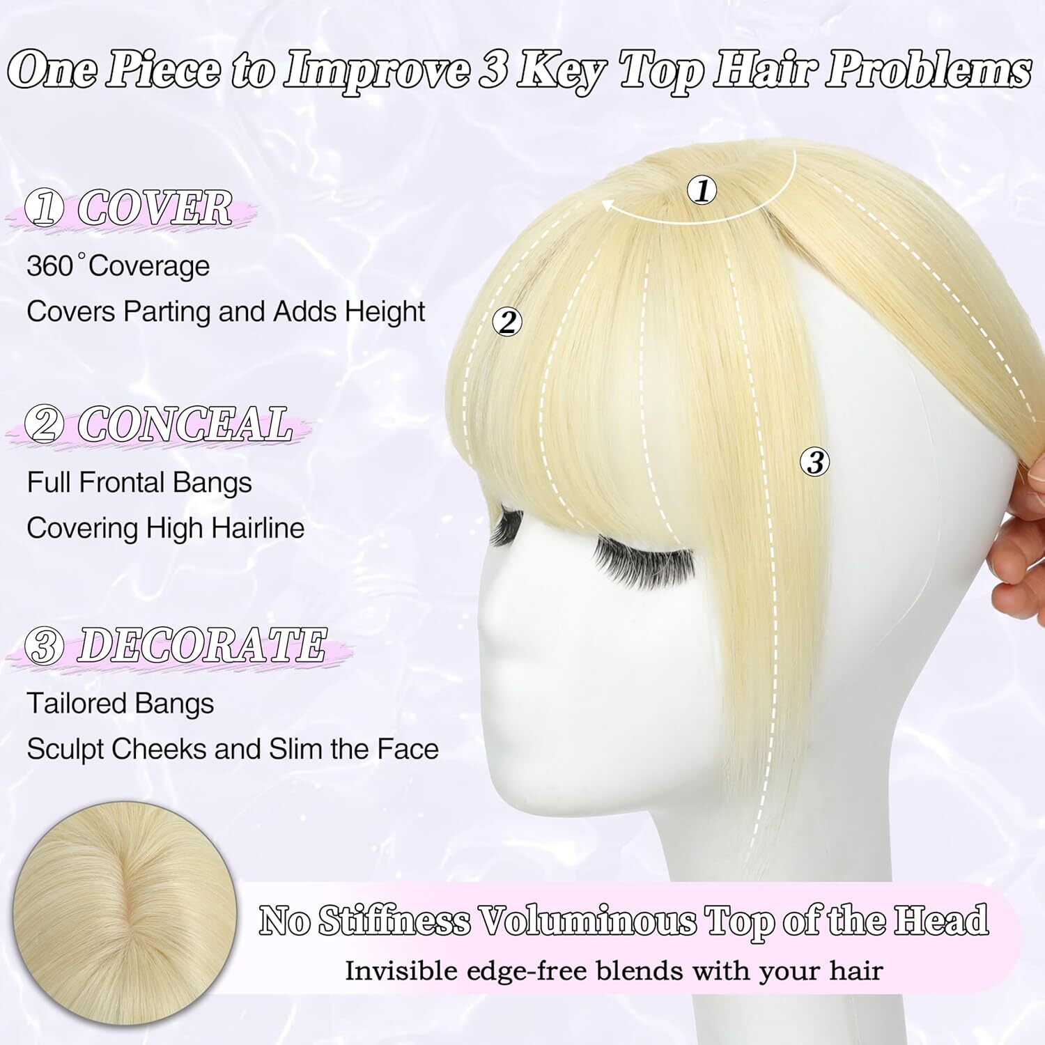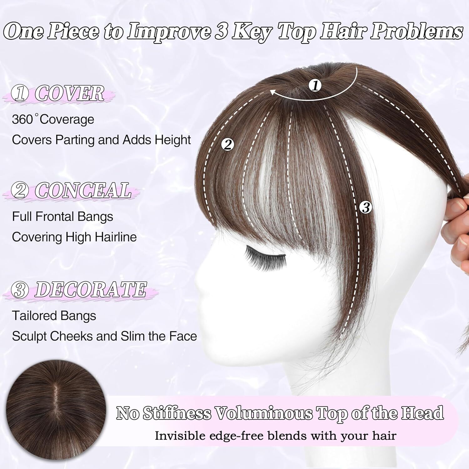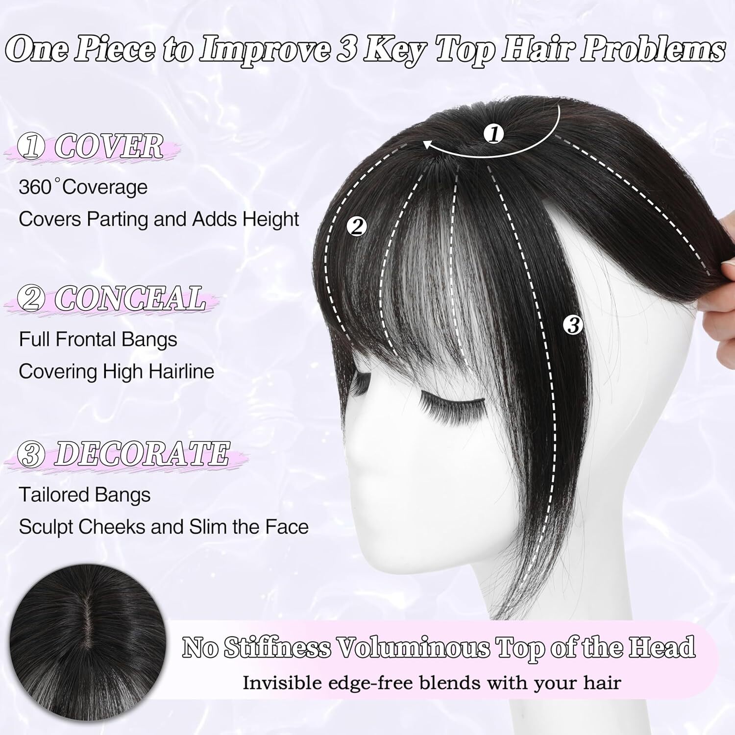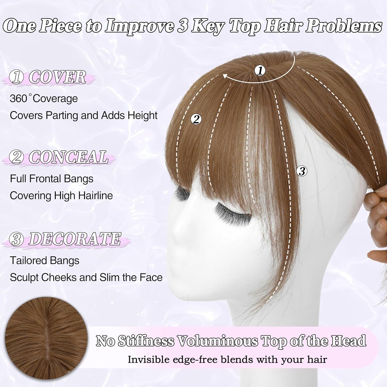 Hair Toppers 360°3D Topper with Bangs for Thinning Hair Clip in Bangs with Upgraded Silk Base Perfect for Daily Wear