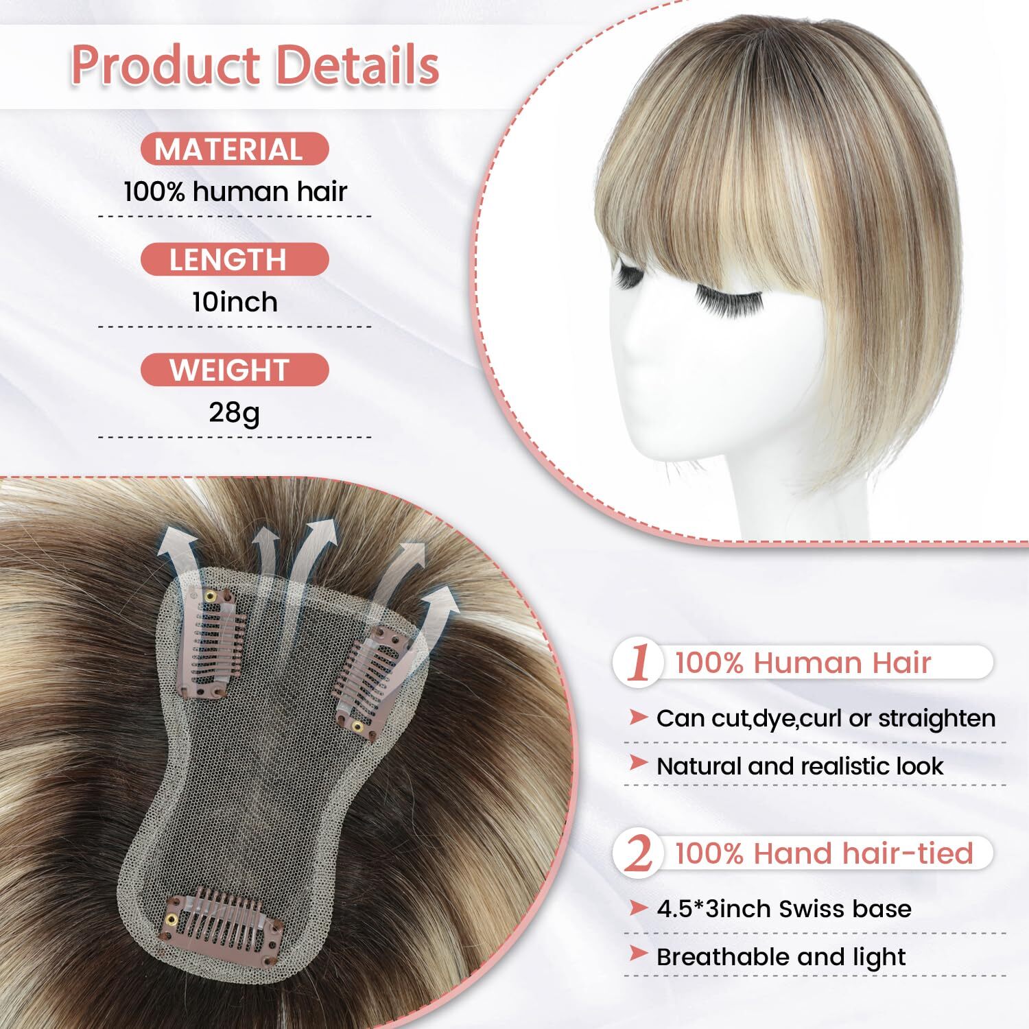 Hair Toppers for Women Real Human Hair Toppers with Thinning Hair Bangs