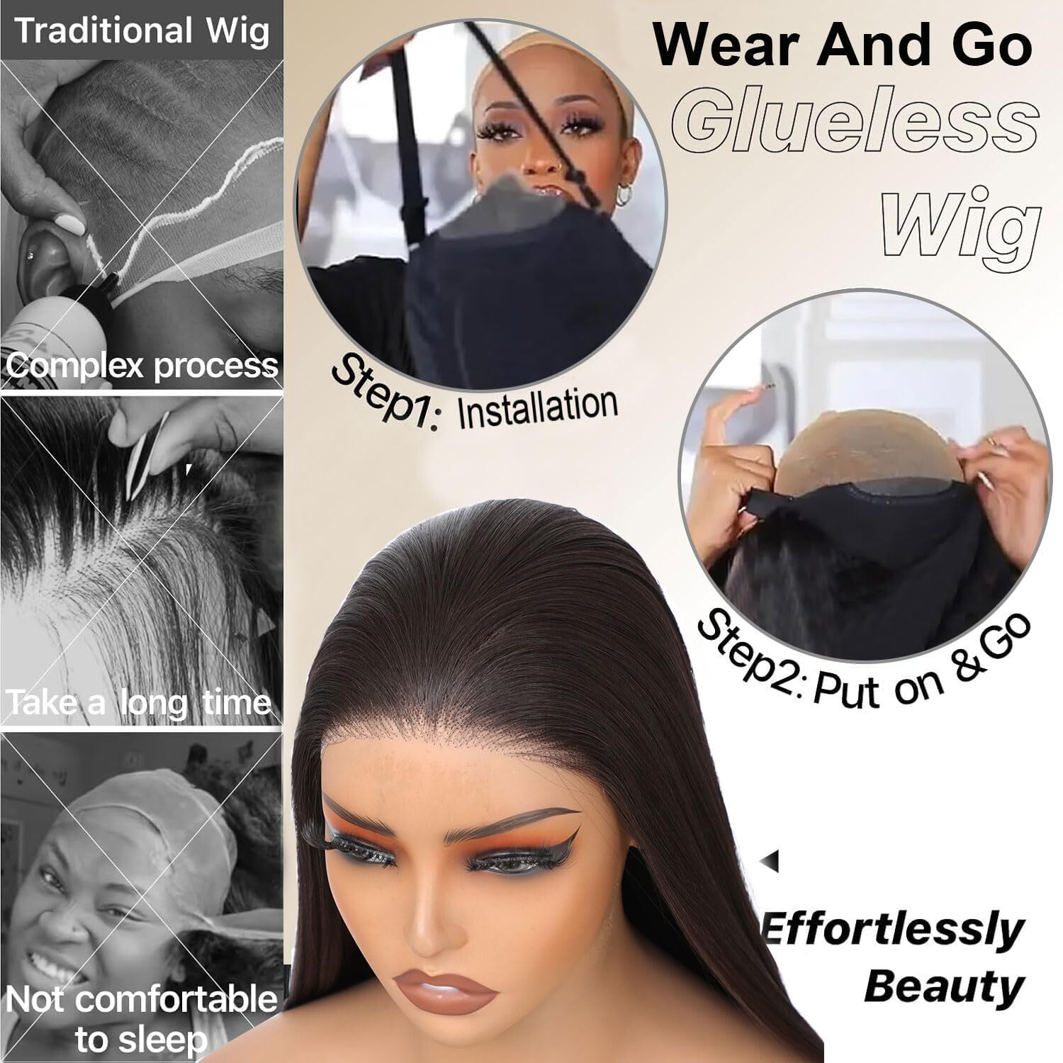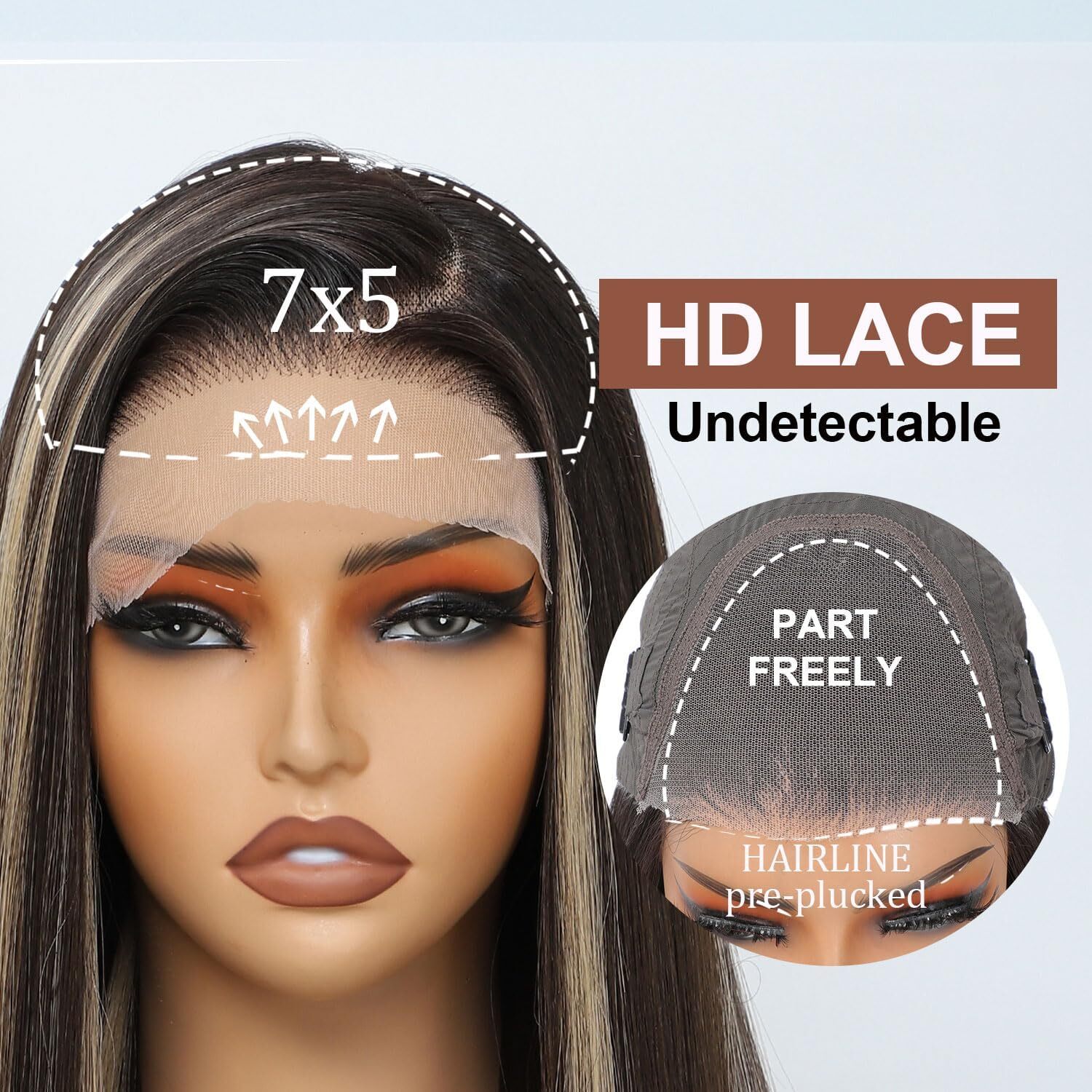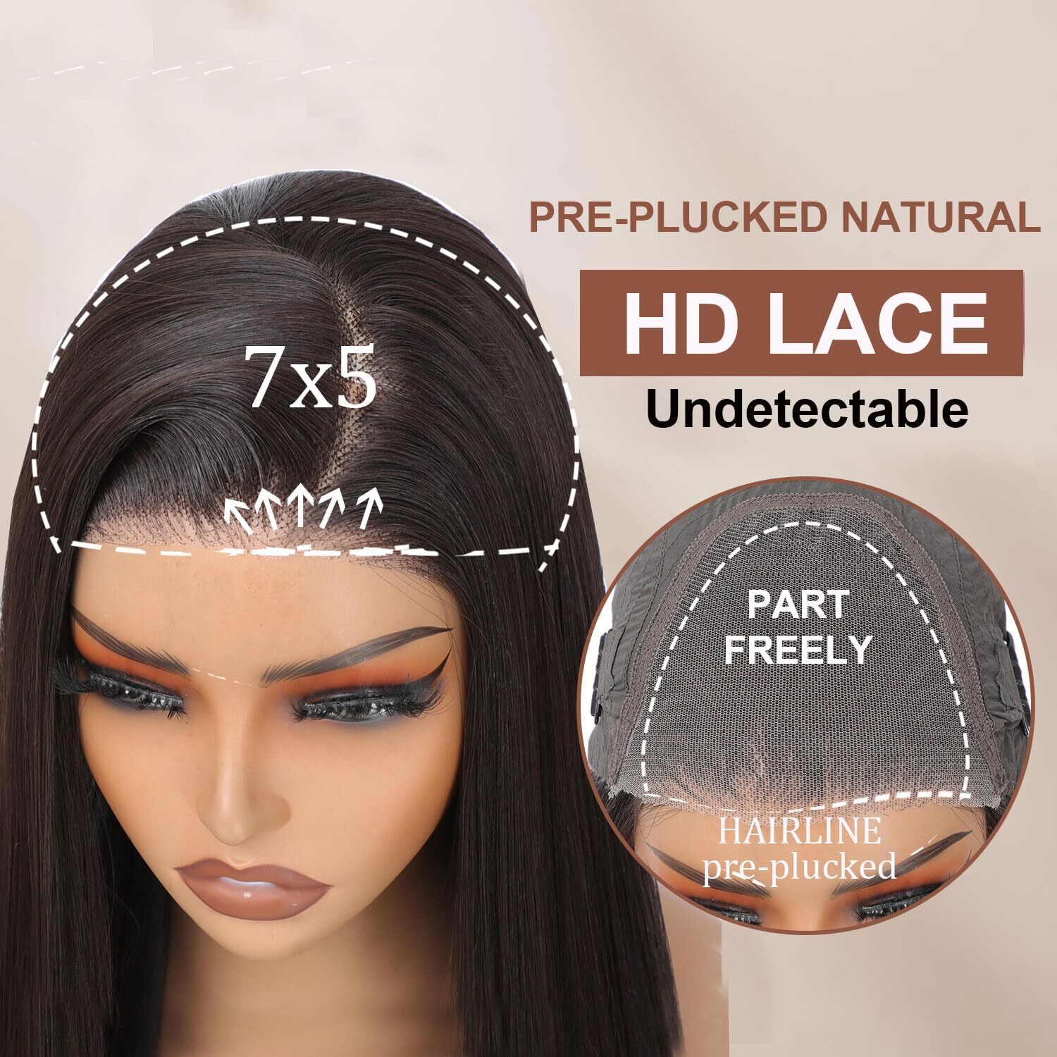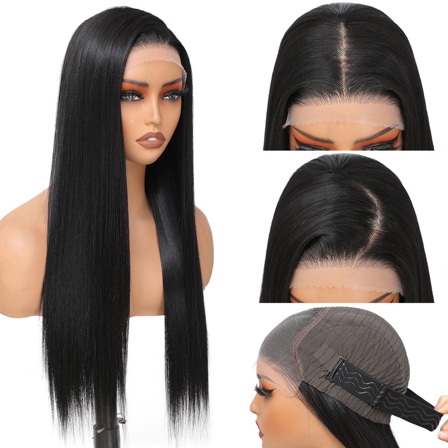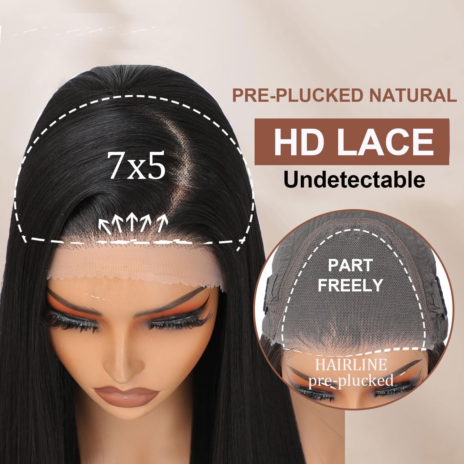 Synthetic Lace Front Wig 7x5 Glueless Wig HD Lace Front Wig for Women Pre-Plucked Ready to Wear Wigs Beginner Friendly Natural Black 26inch