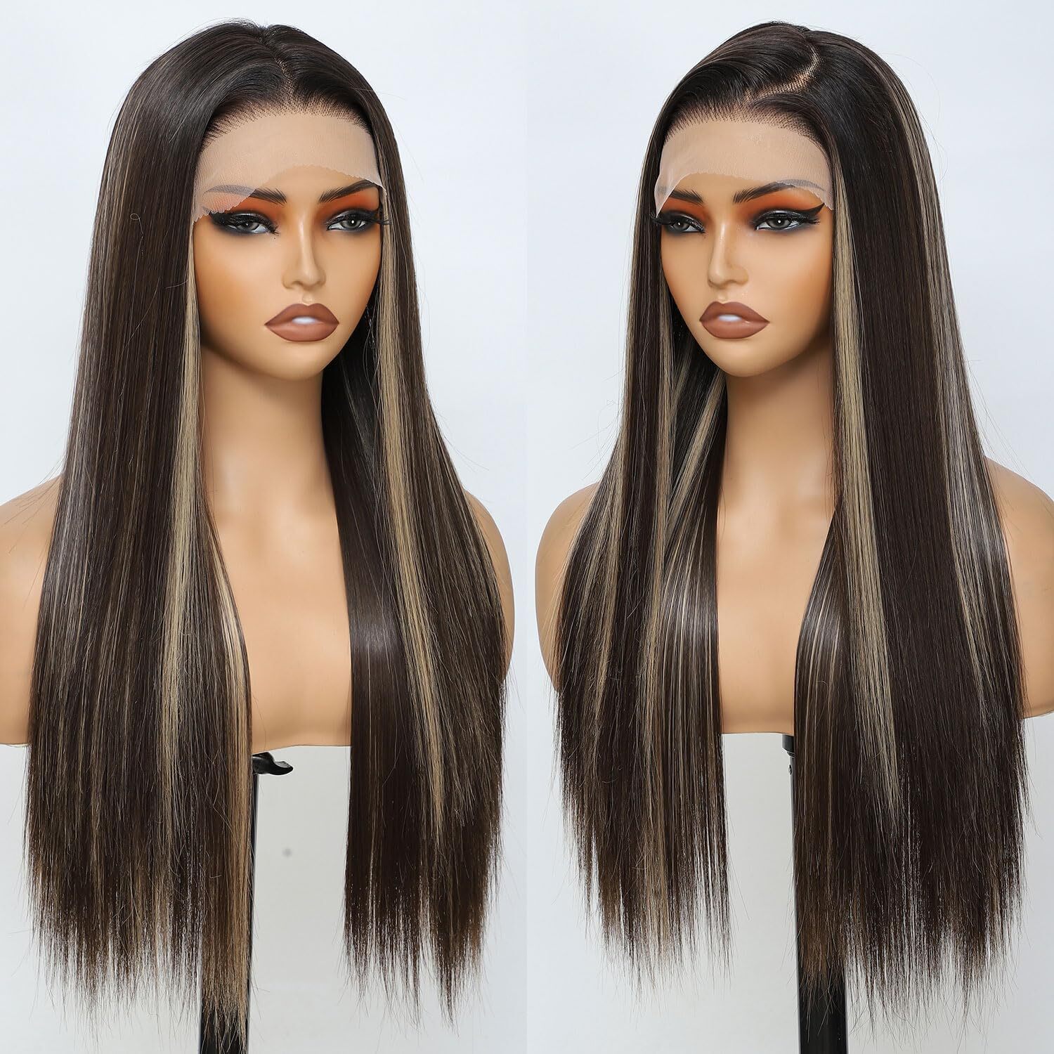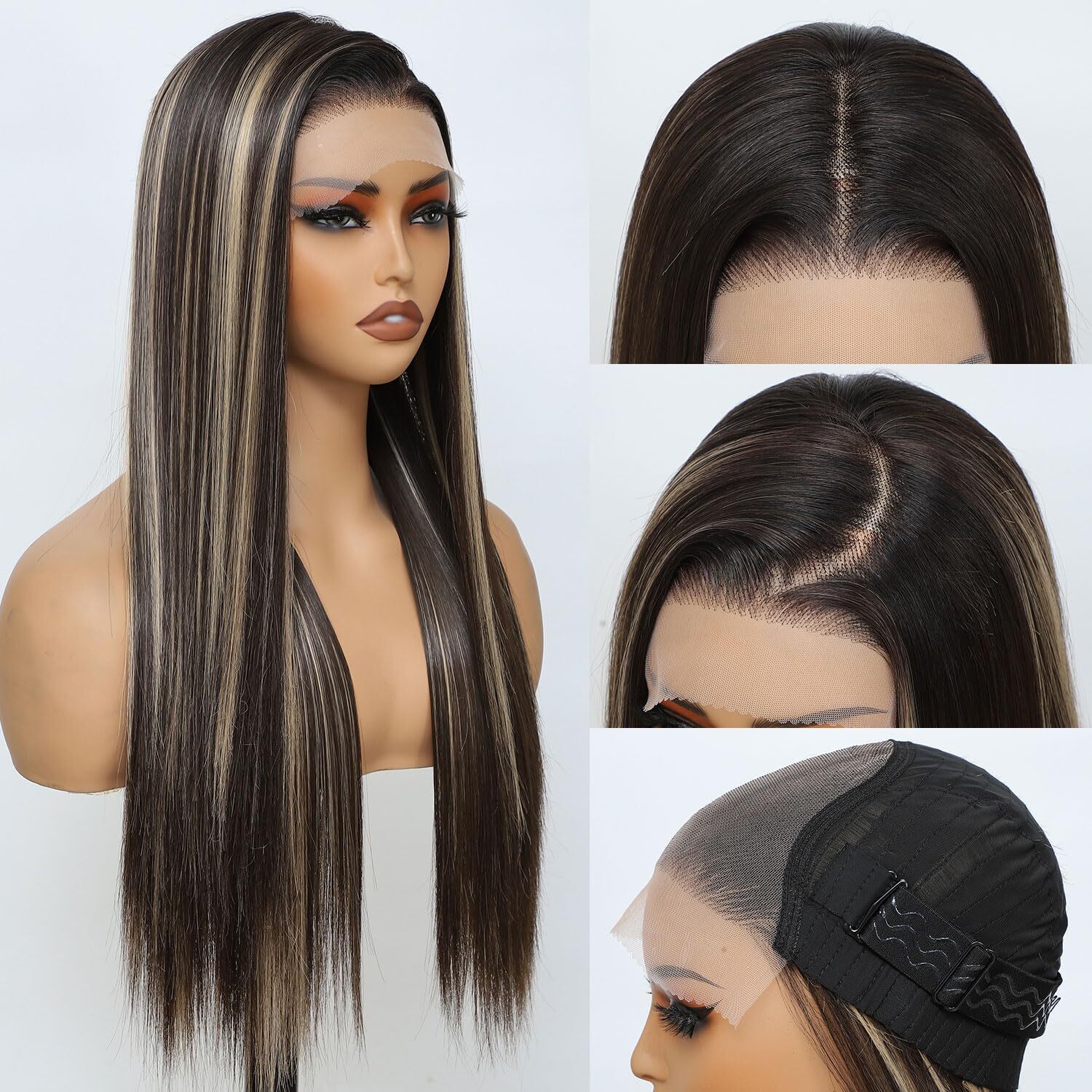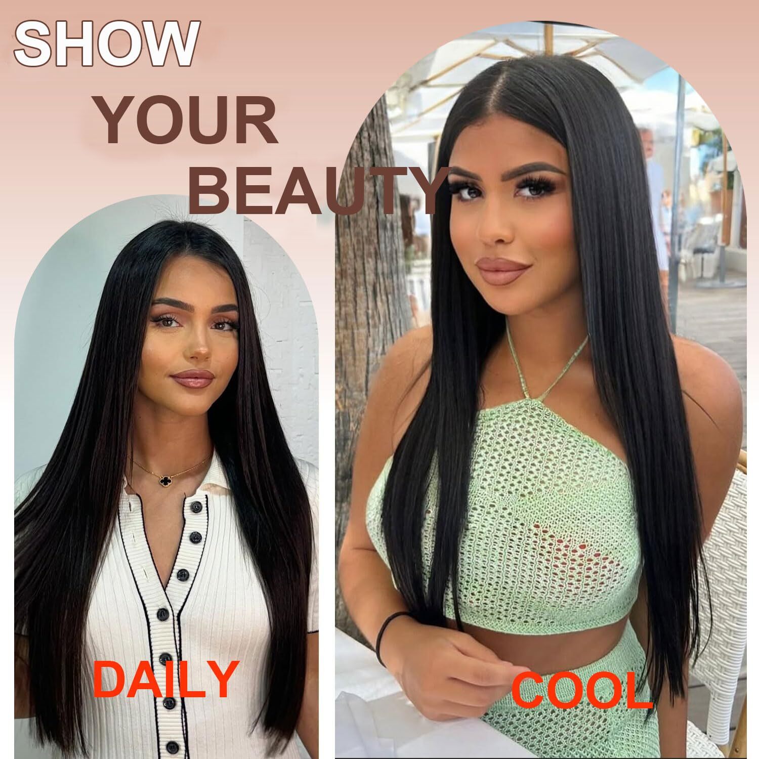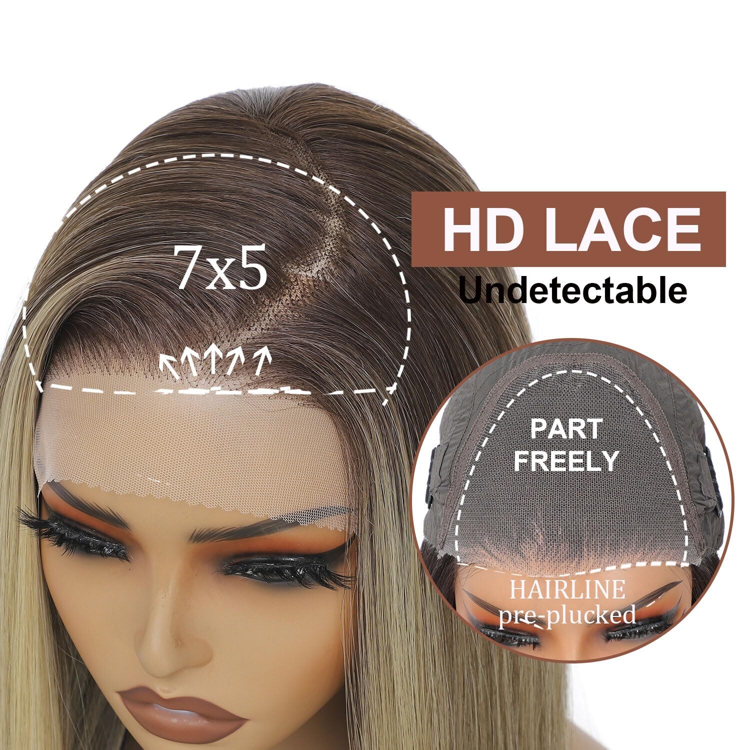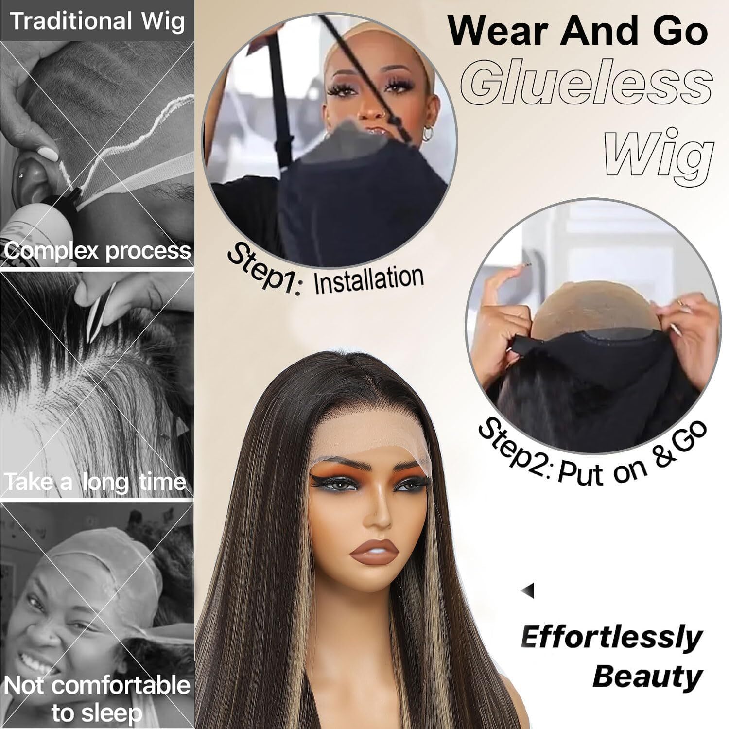 Synthetic Lace Front Wig 7x5 Glueless Wig HD Lace Front Wig for Women Pre-Plucked Ready to Wear Wigs Beginner Friendly Natural Black 26inch