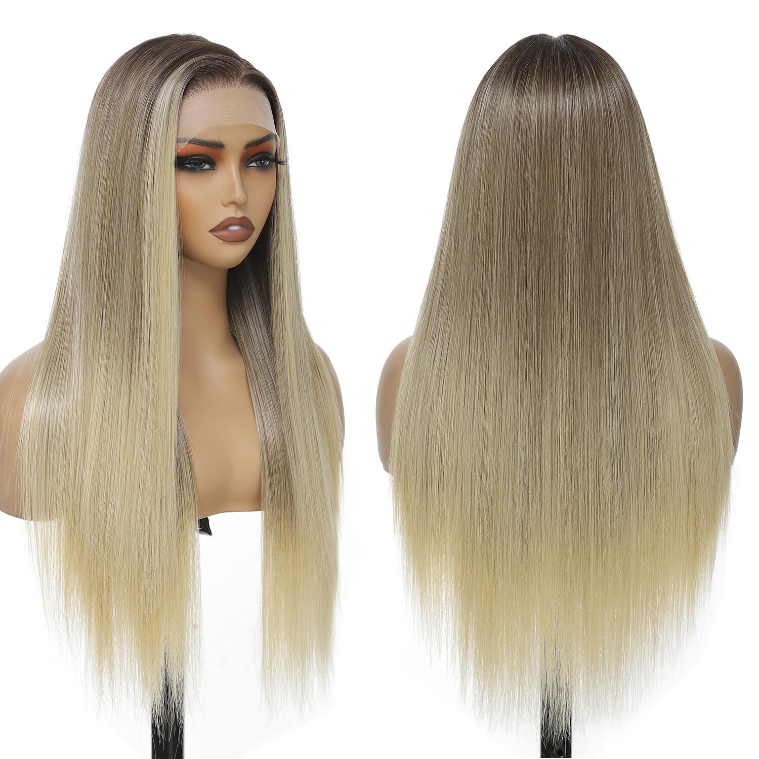 Super Double Drawn Vietnamese Bone Straight 10 Inches Blonde with Brown Roots Bob Wigs Human Hair 4x4 Closure T4/27 Colored Bob