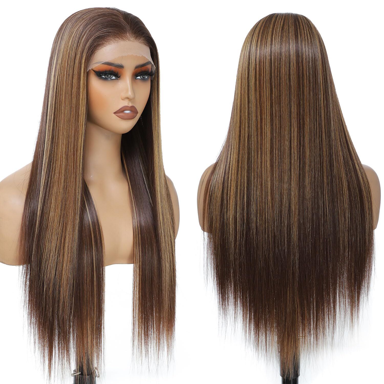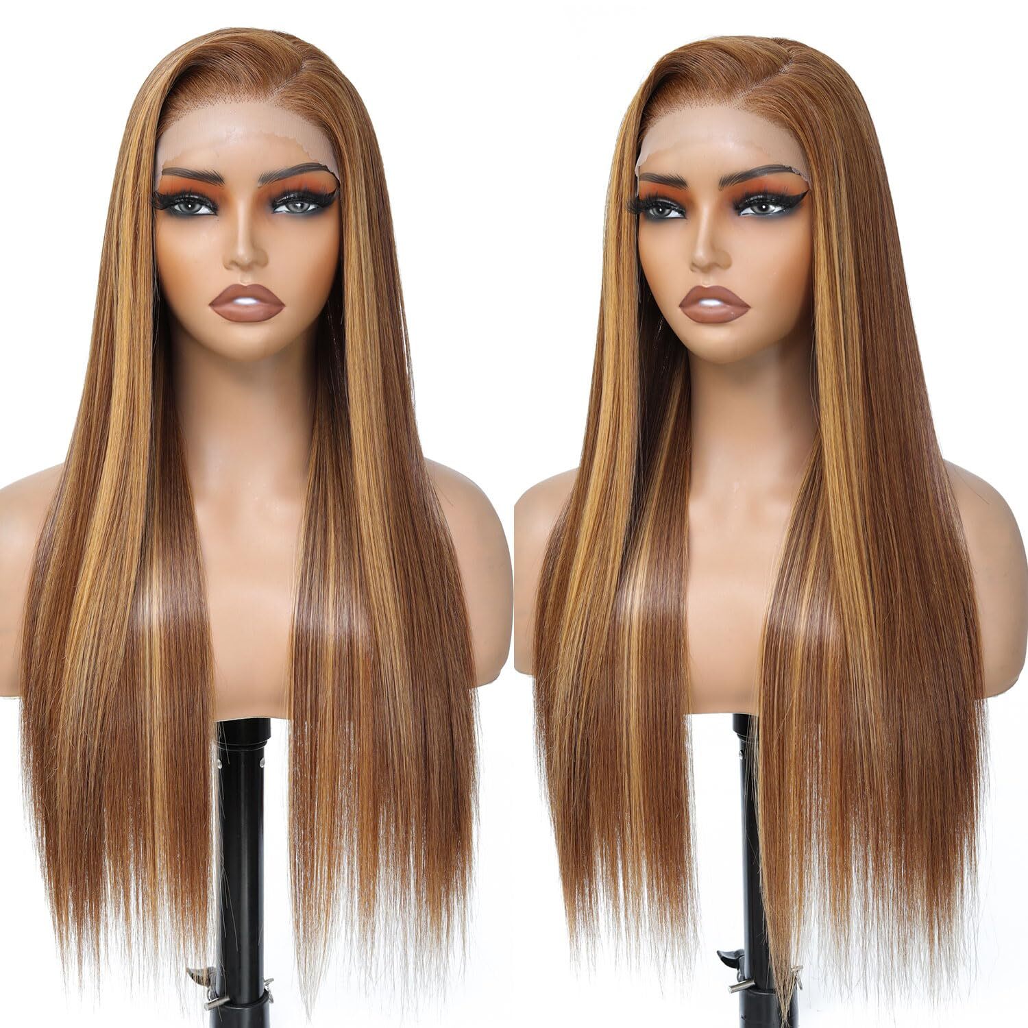 200% Density 12A Double Drawn Highlight Color Hair Bob Straight Human Hair Wig 13x4 Transparent Lace Frontal Hair Wig